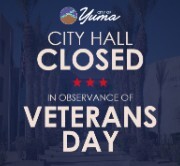 Yuma City Hall will be closed Tuesday, November 11, 2025, in observance of Veterans Day.