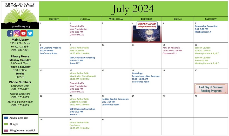 You can also check out their website for details on all Yuma County Library District location activities