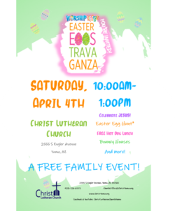 Join us in celebrating Jesus, an Easter Egg Hunt, Bounce Houses, FREE Lunch, and more!